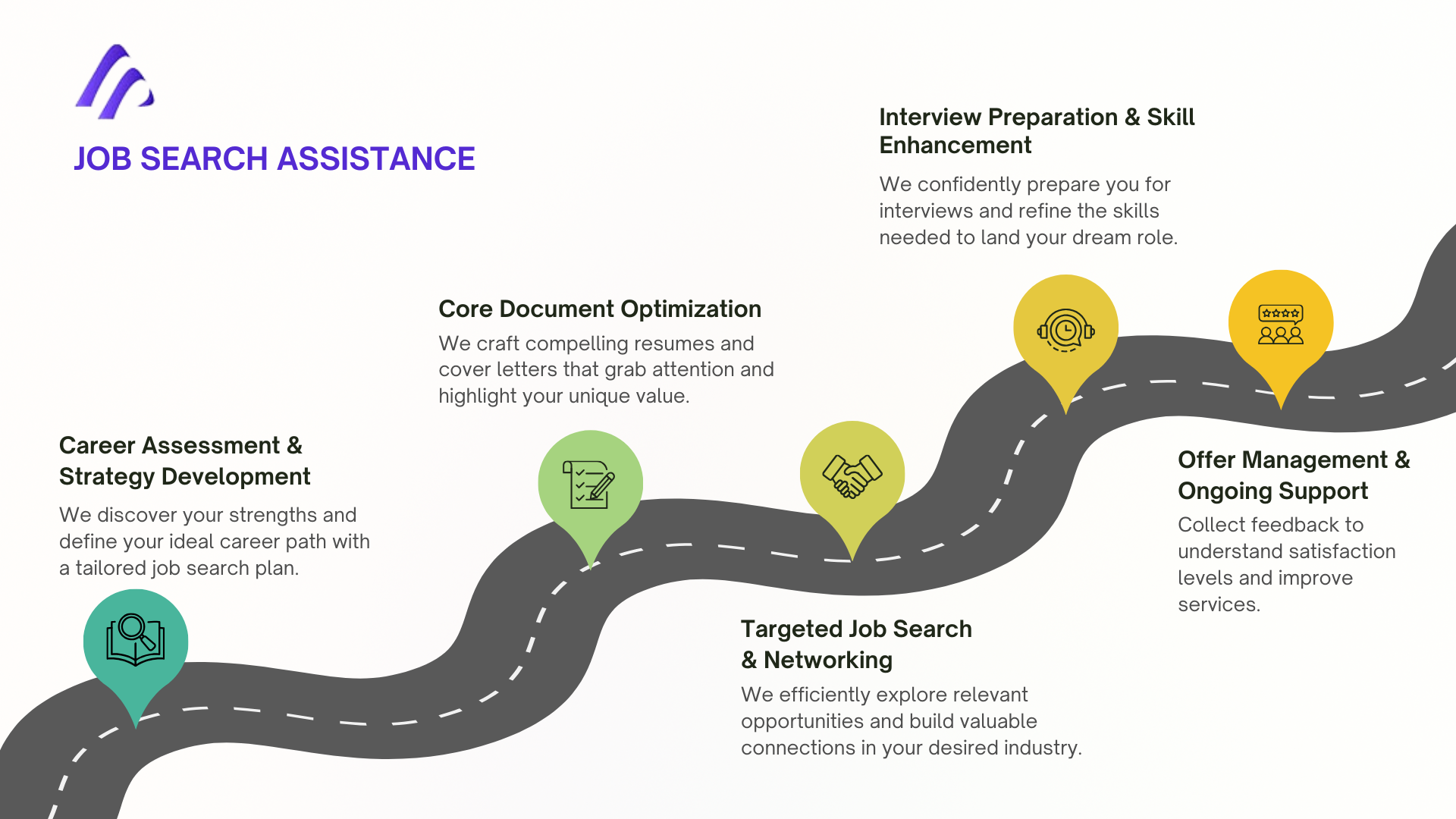 Our team is here to support your job search journey from application to offer. With Aymos Partners, you're never alone in your career search — we become your partner in progress.